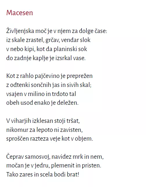»Veste, jaz imam pa vas in vašega gozdarstva do tukaj gor,« sem mu odgovoril. »To, kar ste vi danes, sem jaz že bil, kar pa jaz še bom, pa vi nikoli ne boste.«